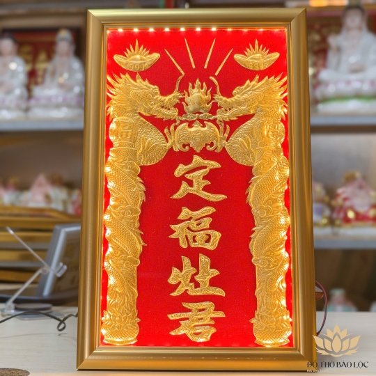 [23x37] Bài vị Ông Táo dát vàng khung gỗ vàng cao 37cm ngang 23cm