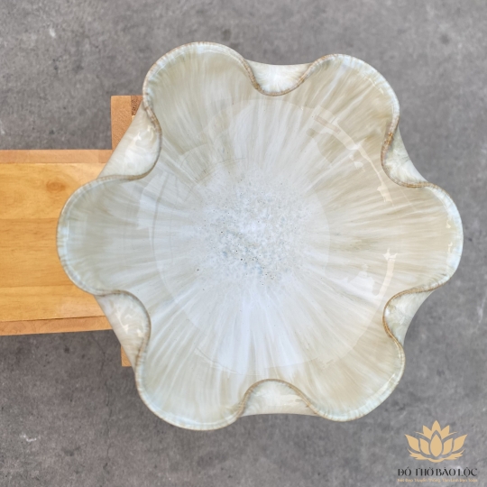 Bát thả bông bát tụ lộc “ Minh đường tụ thủy” men đá Bát Tràng - Màu Trắng - Ngang 30cm