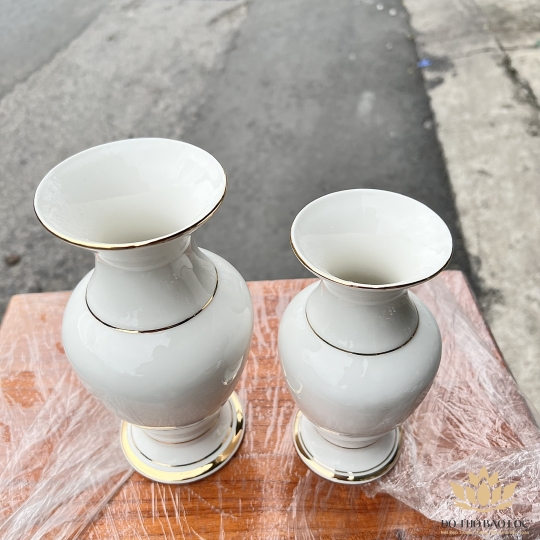Bình hoa thờ cúng sứ họa tiết Đá Hoa Cương cao 18cm ngang 8cm – Màu Trắng