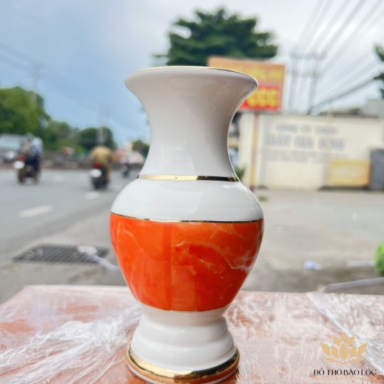 Bình hoa thờ cúng sứ họa tiết đá hoa cương Cao 25cm Ngang 11cm - Đá hoa cương màu Đỏ