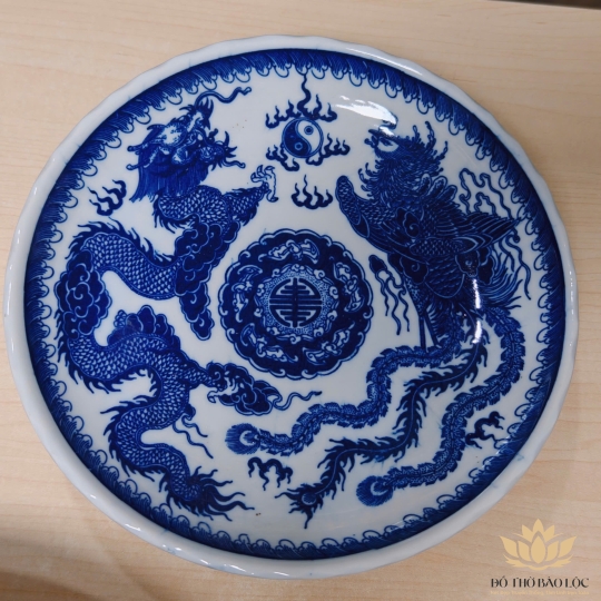 Đĩa sứ thờ họa tiết long phụng bằng gốm Bát Tràng (Mẫu ngẫu nhiên, nhiều kích cỡ)