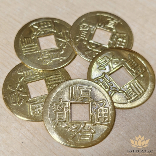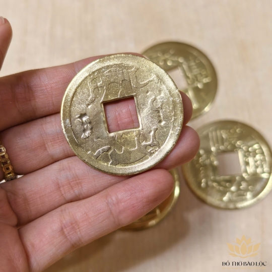 · Hình dạng: Tròn viền ngoài, lỗ vuông ở giữa – tượng trưng cho “Trời tròn, Đất vuông”, mang ý nghĩa hài hòa âm dương.