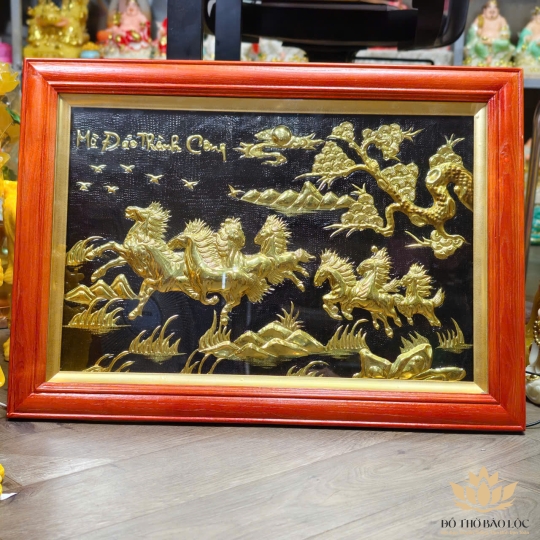 Tranh đồng Mã Đáo Thành Công khung gỗ ngang 70 cm x Cao 50cm
