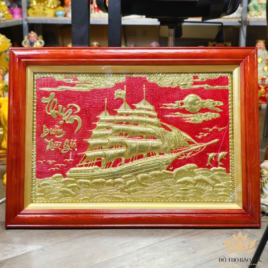 Tranh Thuận Buồm Xuôi Gió Bằng Đồng Khung Gỗ Ngang 70cm Cao 50cm