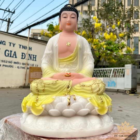 Tượng Phật A Di Đà bằng đá nhập khẩu cao cấp cao 40cm – Màu trắng