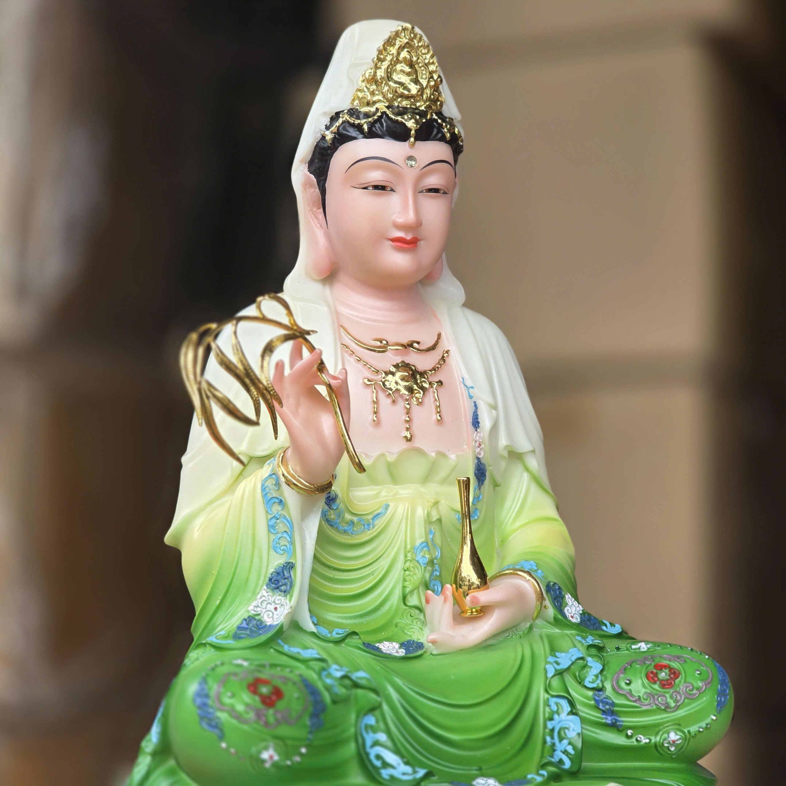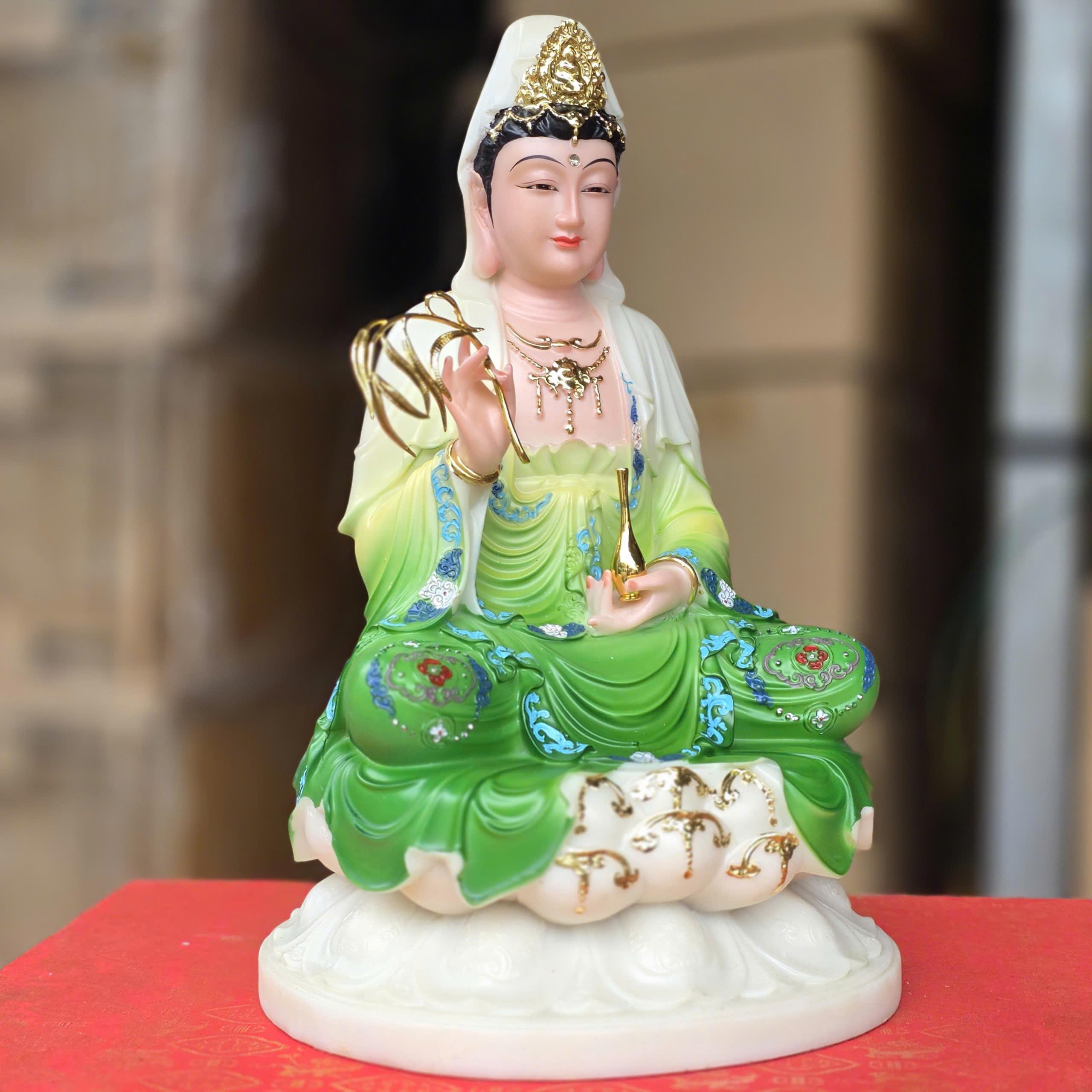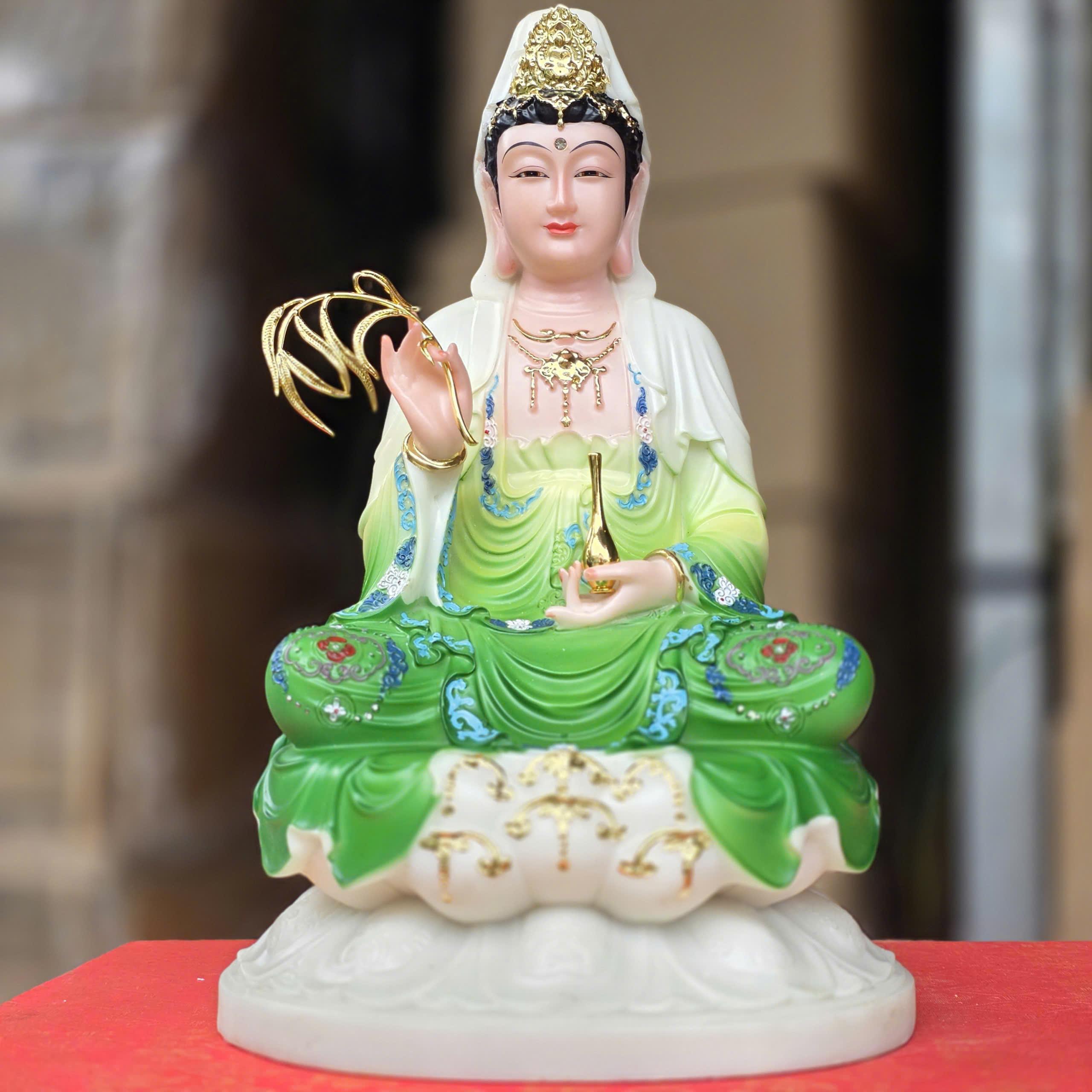 Tượng Quan Thế Âm Bồ Tát bằng đá nhập khẩu cao cấp cao 30cm – Màu xanh lá