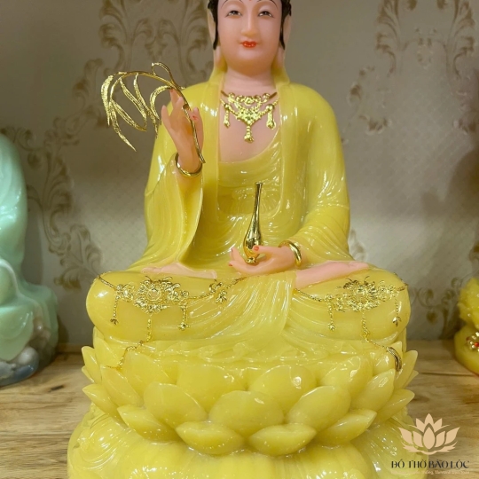 [12inch] Tượng Phật Quan Âm Ngồi Đài Sen Đá Việt Nam Cao Cấp 3 Màu (Trắng, Xanh, Vàng) - Cao 30cm - Trang Trí Nhà