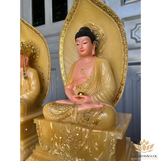 [12inch] Tượng Thích Ca Mâu Ni Phật Bằng Đá Nhập Đế Vuông Cao 30cm - Màu Vàng