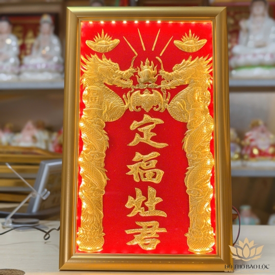 [23x37] Bài vị Ông Táo dát vàng khung gỗ vàng cao 37cm ngang 23cm
