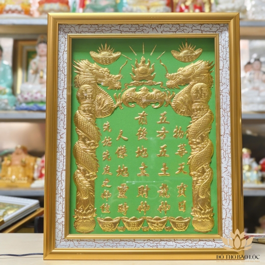 Bài Vị Thần Tài Thổ Địa Dát Vàng Khung Gỗ Sơn Vàng Nền Xanh Lá (nhiều kích cỡ)