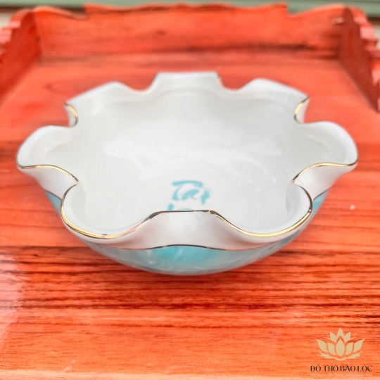 - Bát lá sen thả hoa hay còn gọi là " Bát Minh Đường Tụ Thuỷ". Trong phong thuỷ, Minh Đường Tụ Thuỷ được xem là tượng trưng cho Phúc khí, là điềm tốt lành và may mắn, là cách để giữ cho tiề n bạc khỏi trôi đi. Với ý nghĩa rất tốt đối với mọi gia đình, sản phẩm "Bát Minh Đường Tụ Thuỷ" với màu men hoả biến độc đáo lạ mắt có thể để trên bàn làm việc, phòng khách, ban thờ thần tài sẽ mang lại t.ài lộc và may mắn cho gia chủ.