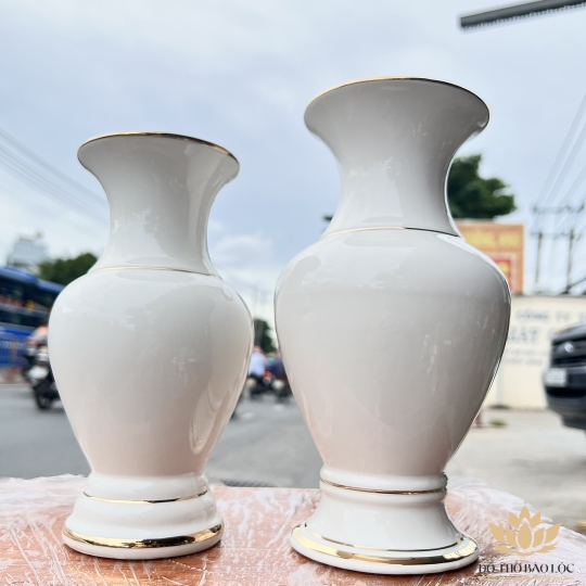 Bình hoa thờ cúng sứ họa tiết Đá Hoa Cương cao 20cm ngang 9cm – Màu Trắng