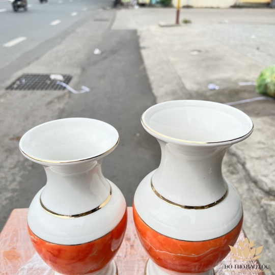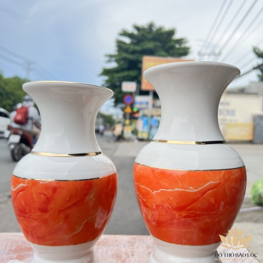 Bình hoa thờ cúng sứ họa tiết đá hoa cương Cao 30cm Ngang 13cm - Đá hoa cương màu Đỏ