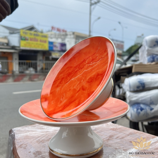 Đĩa sứ thờ sứ Đá Hoa Cương Ngang 20cm Cao 8cm - Màu Đỏ