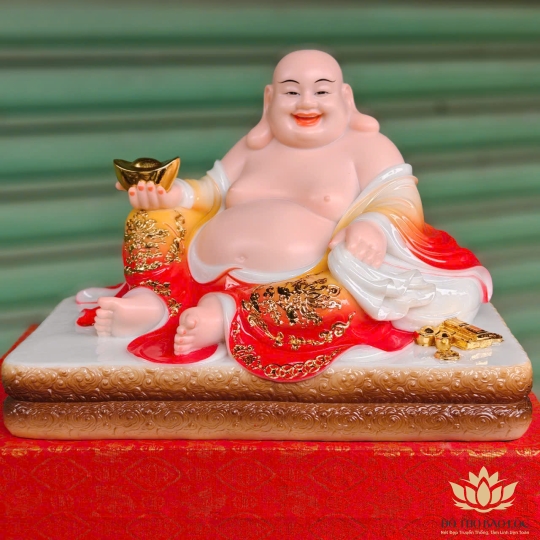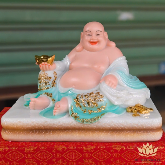 Phật Di Lặc hay còn gọi là Phật cười là biểu tượng của niềm vui, hạnh phúc trọn vẹn. Nhiều người trưng thờ tượng Phật Di Lặc cầm v àng thỏi trong nhà ngoài việc cầu bình an, vui vẻ thì còn sử dụng với mục đích cầu tài lộc và may mắn trong cuộc sống.